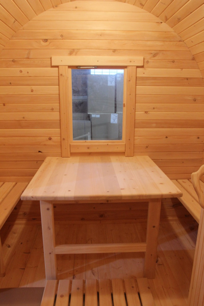 Столик в раздевалке будет удобен при длительном пребывании в бане.