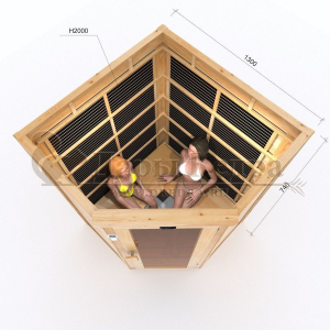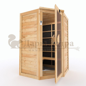 Это специально оборудованная кедровая кабина для прогрева тела человека сухим теплом. Воздух в таких парных не нагревается. Инфракрасные лучи воздействуют на тело, равномерно прогревая мышцы, суставы и органы. Карбоновые излучатели, встроенные в стены кабины, обладают мягким прогревом, что полностью исключает возможность ожога. Работает кабина за счет электричества. Установка сауны в угол, позволяет рационально использовать пространство помещения. Подходит как для домашнего использования, так и для коммерции.