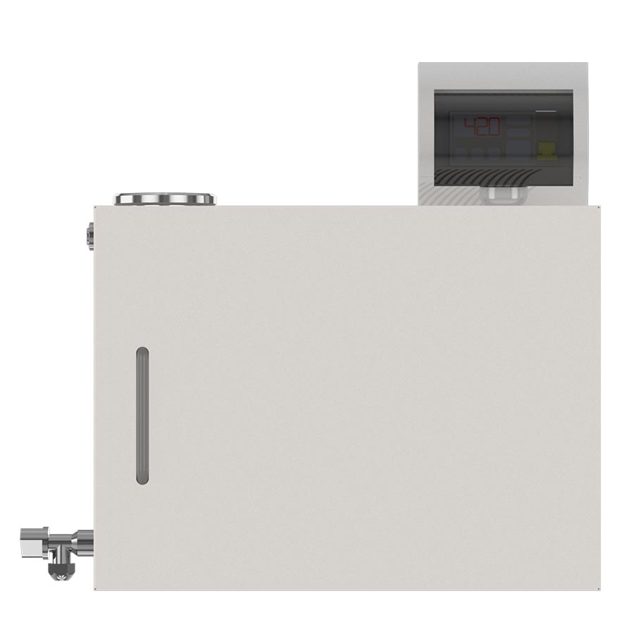 Парогенератор проточный c выносным/встроенным цифровым пультом управления, 12 кВт Проточные парогенераторы подключаются к водопроводу и автоматически добавляют воду в прибор при ее расходовании. Парогенератор служит для образования пара в саунах, хамамах, банях и душевых кабинах. Мощность стоит выбирать в зависимости от объема парной. Работа парогенератора осуществляется за счет встроенного или выносного пульта управления (на ваш выбор). Он позволяет устанавливать температуру, мощность и время процедур парения. При достижении необходимой температуры происходит автоматическое прекращение подачи тепла для нагрева воды. При снижении температуры более чем на 3°С температурный датчик снова включает подогрев. Таким образом время непрерывной работы парогенератора составляет более 12 часов.