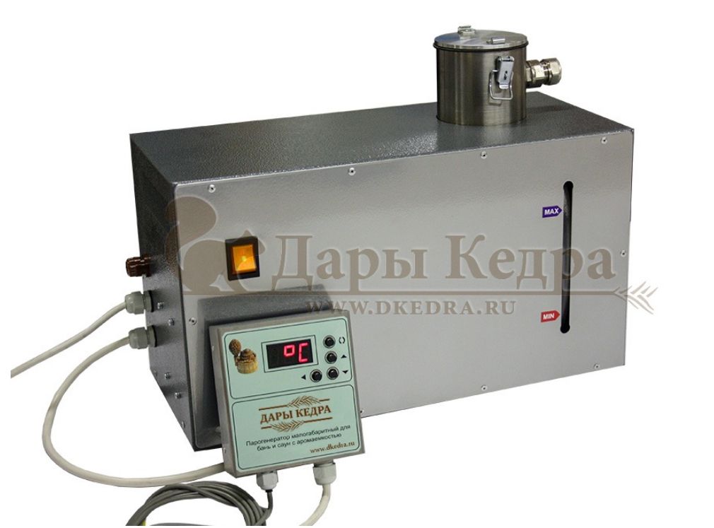 Устройство предназначено для создания и подачи пара в кедровую бочку, а также поддержания в ней заданной температуры.