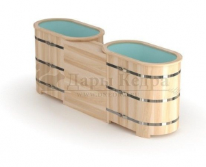 Купель двойная овальная гладкая столярная из кедра с пластиковой вставкой