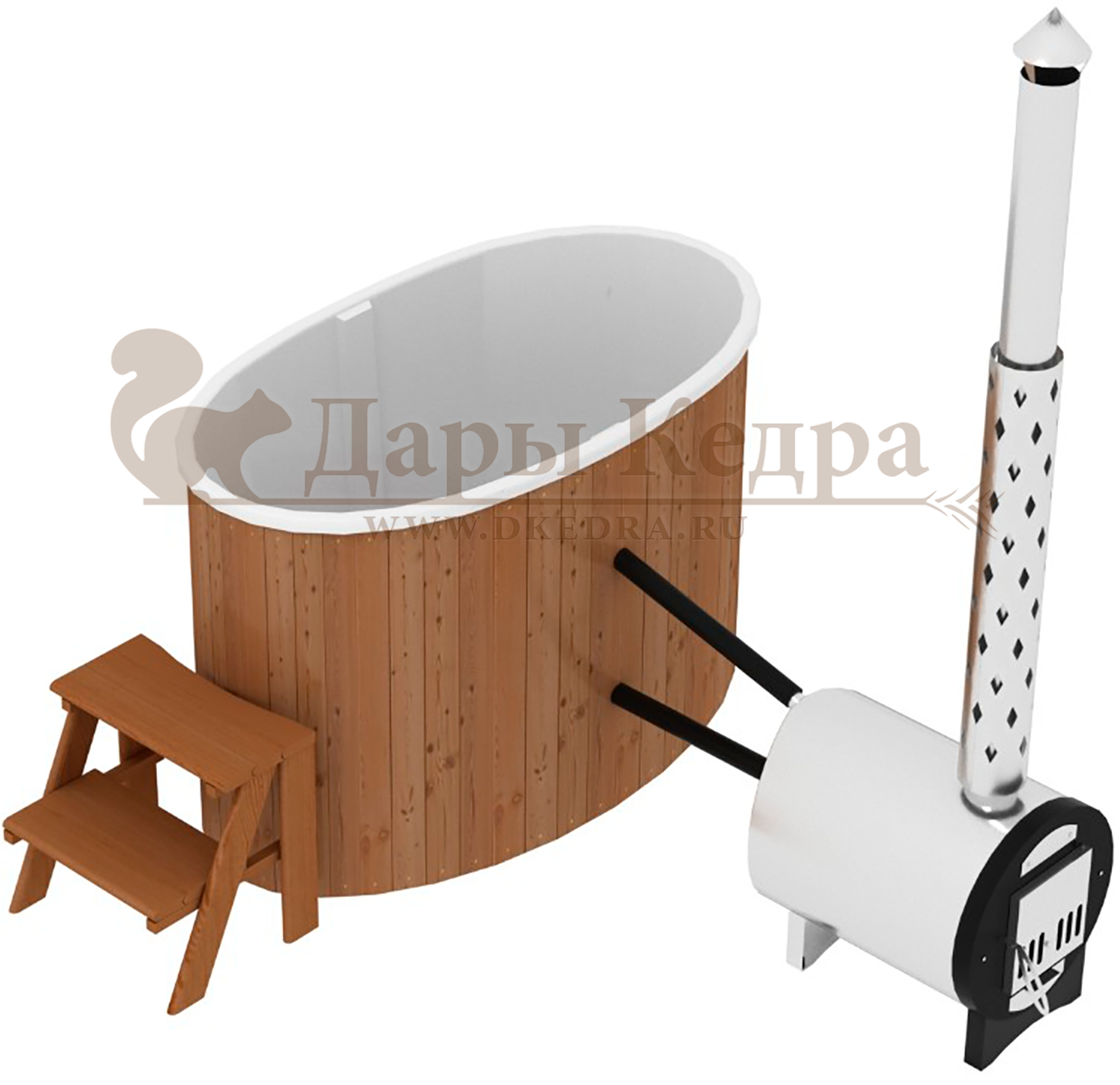 Финская овальная композитная купель с подогревом (с печкой) «НОТА 79 с печью 25 квт» Это уличная подогреваемая купель с овальной внутренней чашей, которая изготовлена из современного прочного и термоустойчивого материала (композита). Форма чаши обеспечивает комфортную посадку во время принятия процедур. Для удобства пользования купель оборудована приставной лестницей. Подогрев воды осуществляется внешней печью с дымоходом. Композитная вставка придает купели красивый внешний вид, продлевает срок службы и облегчает уход за изделием. Парение на свежем воздухе – это отличный способ укрепить здоровье и поддержать организм в тонусе.