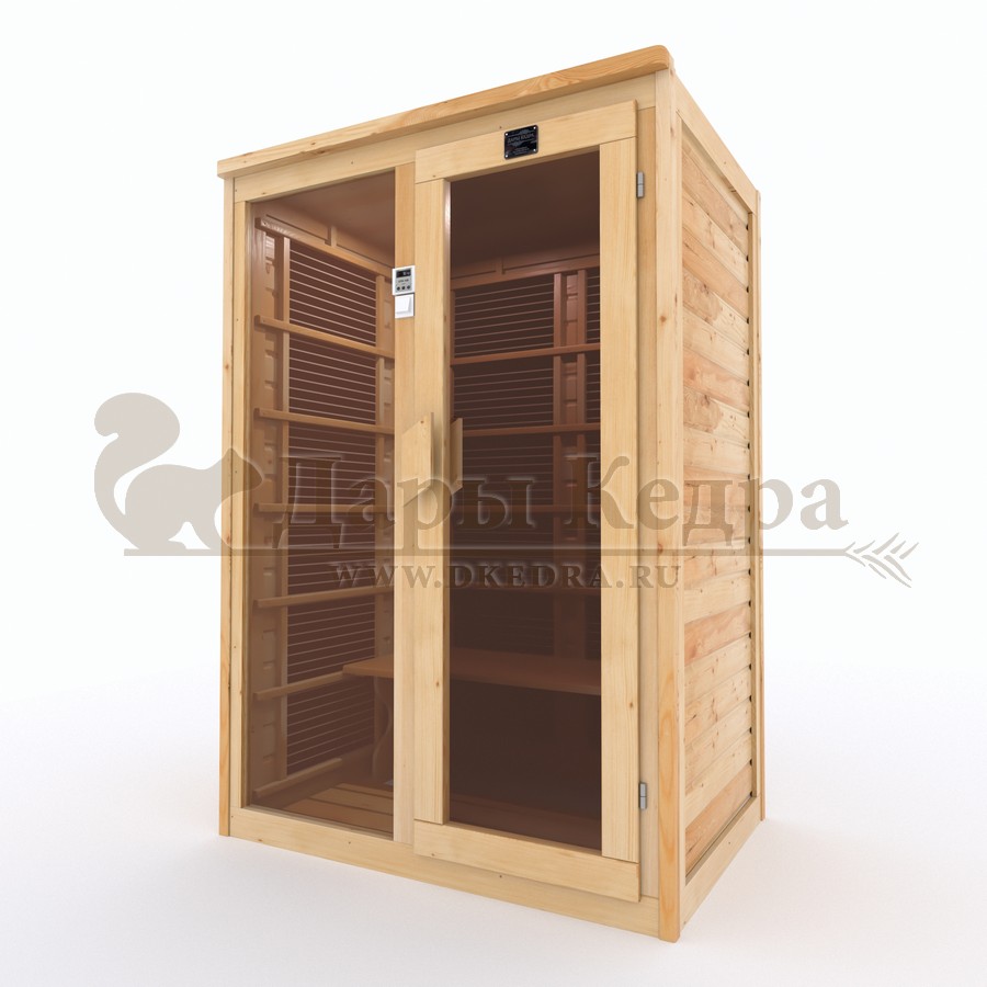 Двухместная инфракрасная сауна кабина из кедра и липы с керамическими излучателями Это специально оборудованная кабина из липы для прогрева тела человека сухим теплом. Воздух в таких парных не нагревается. Инфракрасные лучи воздействуют на тело, равномерно прогревая мышцы, суставы и органы. Керамические излучатели похожи на лампы, имеют высокую температуру нагрева, поэтому защищены противоожоговыми решетками. Тело человека в таких саунах нагревается интенсивнее. Работает кабина за счет электричества. Двухместная инфракрасная сауна с керамическими излучателями подойдет как для домашнего использования, так и для коммерции. Обращаем Ваше внимание, что в стандартную комплектацию входит трапик для ног, но вы можете его заменить на цельный пол совершенно бесплатно!