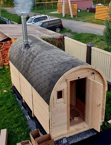 Замечательную баню-бочку заказали и получили неделю назад: топим и паримся каждый день! Очень довольны работой: быстро, экономично, доступно! В ближайшее время планируем стоить дом, поэтому при необходимости сможем ее переместить - это тоже очень круто!